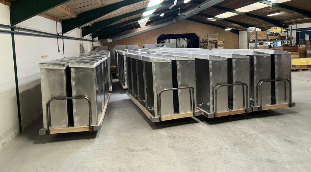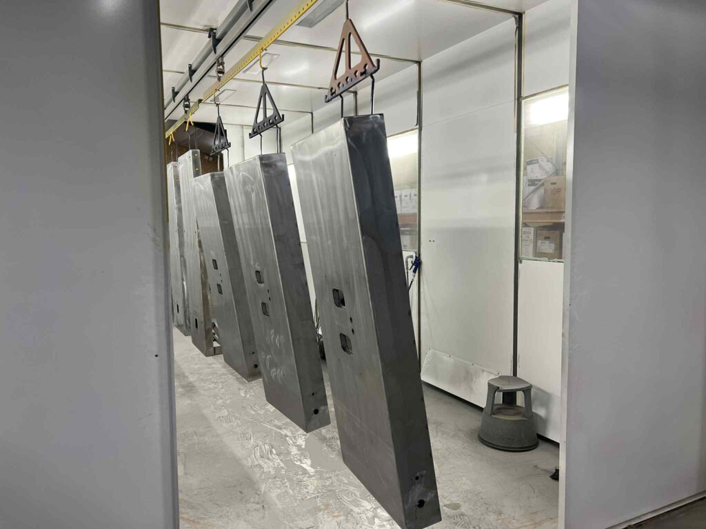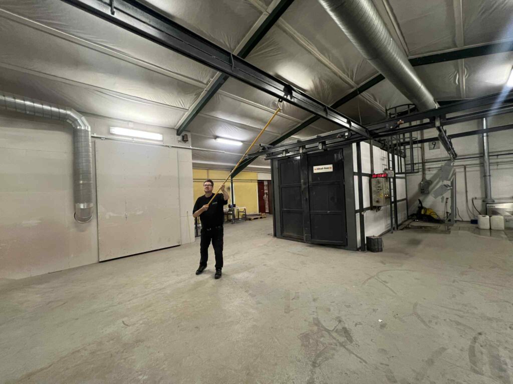 Det nye anlæg betyder, at rå emner nu løftes op med kran og bliver vasket, før de bevæger sig videre i et avanceret skinnesystem – lidt ligesom et slags “tog med sporskifte”, som virksomhedens ejer, Peter Frederiksen, beskriver det. Til det nye anlæg medfølger en ny hærdeovn, som har tre spor, og som kan håndtere op til seks meter lange emner, hvilket muliggør både større volumen og fleksibilitet i produktionen.